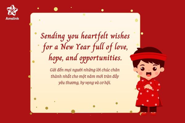 Bên cạnh những câu chúc Tết Tiếng Anh thông dụng, Amslink gợi ý list lời chúc Tết Tiếng Anh band 7.0++ siêu hay dưới đây: