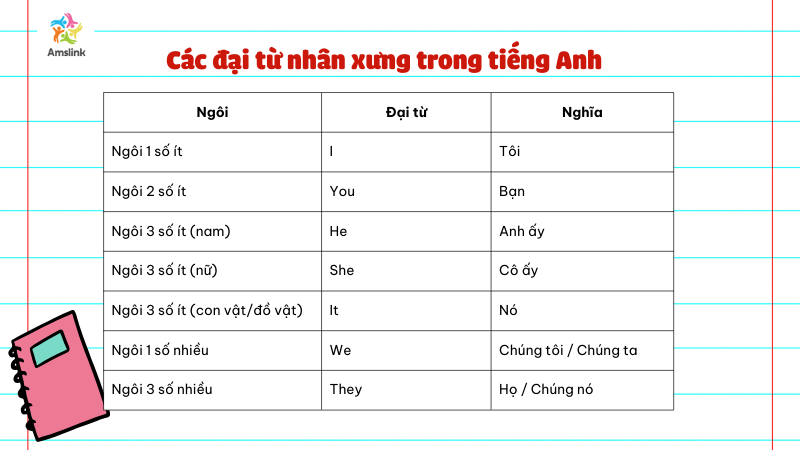 Để bắt đầu, các con hãy cùng làm quen với bảng đại từ nhân xưng cơ bản trong tiếng Anh nhé.